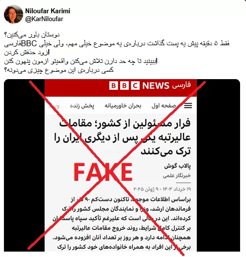همراه با محتوای تولید شده توسط هوش مصنوعی، شبکه PRISONBREAK هویت منابع خبری معتبر رو جعل کرده. به عنوان مثال، محققا یک اسکرین شات و دو ویدیو رو شناسایی کردن که هویت BBC فارسی رو جعل کرده بودن. در کپشن اسکرین شات، KarNiloufar مقاله ای رو از BBC فارسی قرار داده و مدعی شده بود که این مقاله ظرف پنج دقیقه بعد از انتشار توسط این رسانه حذف شده. محققا با این BBC فارسی تماس گرفتن و اونا تأیید کردن که این مقاله هرگز توسط این رسانه منتشر نشده.