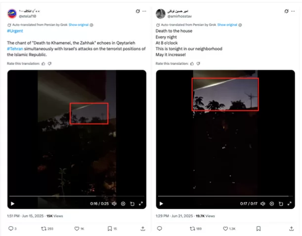 این شبکه حداقل 9 پست مشابه در ۱۳ ژوئن به اشتراک گذاشت که به نظر میرسه تلاشی برای ایجاد ادراک عمومی از بی ثباتی در طول حملات اولیه اسرائیل بود. محققا اعلام کردن که نمیتونن صحت هیچ یک از این ویدیوها رو تأیید کنن و ممکنه برخی از اونا توسط هوش مصنوعی تولید شده باشن.