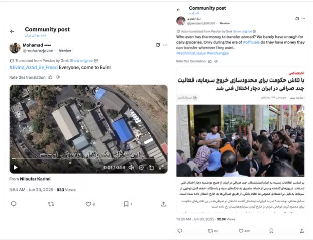 محققا یک پروفایل X رو شناسایی کردن که به نظر میرسه خارج از شبکه PRISONBREAK باشه، اما چندین نشانه از هماهنگی احتمالی بین این دو رو نشان میده. این اکانت نزدیکی بین ملتهای اسرائیل و ایران رو ترویج میده که ملت ایران رو بصورت مظلوم به تصویر میکشه و بطور صریح از هوش مصنوعی برای ساخت و انتشار فراخوانهایی برای آشوب در ایران استفاده میکنه. این تاکتیک با روشها و اهداف PRISONBREAK هم راستاست.