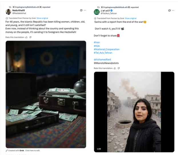- هماهنگی این عملیات با یک حساب کاربری مبتنی بر هوش مصنوعی در X که آشکارا شراکت با اسرائیل در آیندهای بعد از تغییر رژیم در ایران رو تبلیغ میکنه.