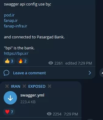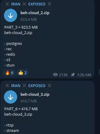این گروه این هفته، مدعی شده بود که تونسته به یکی از برنامه های گروه نرم افزاری فناپ، بنام Behnama که یه نرم افزار تشخیص چهره و حرکت هستش، نفوذ کنه و 20 گیگ داده رو استخراج کنه . بخشی از داده ها از جمله سورس کدها و APIهای مرتبط با این نرم افزار رو هم در کانال تلگرامیشون منتشر کردن.