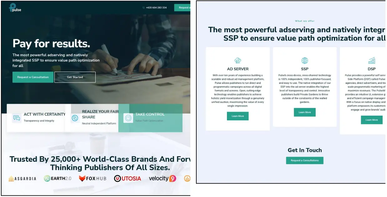 همانطور که قبلا اشاره شد، دو شرکت Pulse Advertise و MorningStar TEC برجسته بودن، چون مطابق محتوای سایتهاشون هر دو در حوزهی تبلیغات آنلاین فعالیت میکردن. طبق ادعای سایت، Pulse Advertise “قدرتمندترین سیستم ad-serving و SSP (Supply Side Platform) یکپارچهی بومی رو ارائه میده تا بهینهسازی مسیر ارزش برای همه رو تضمین کنه”.