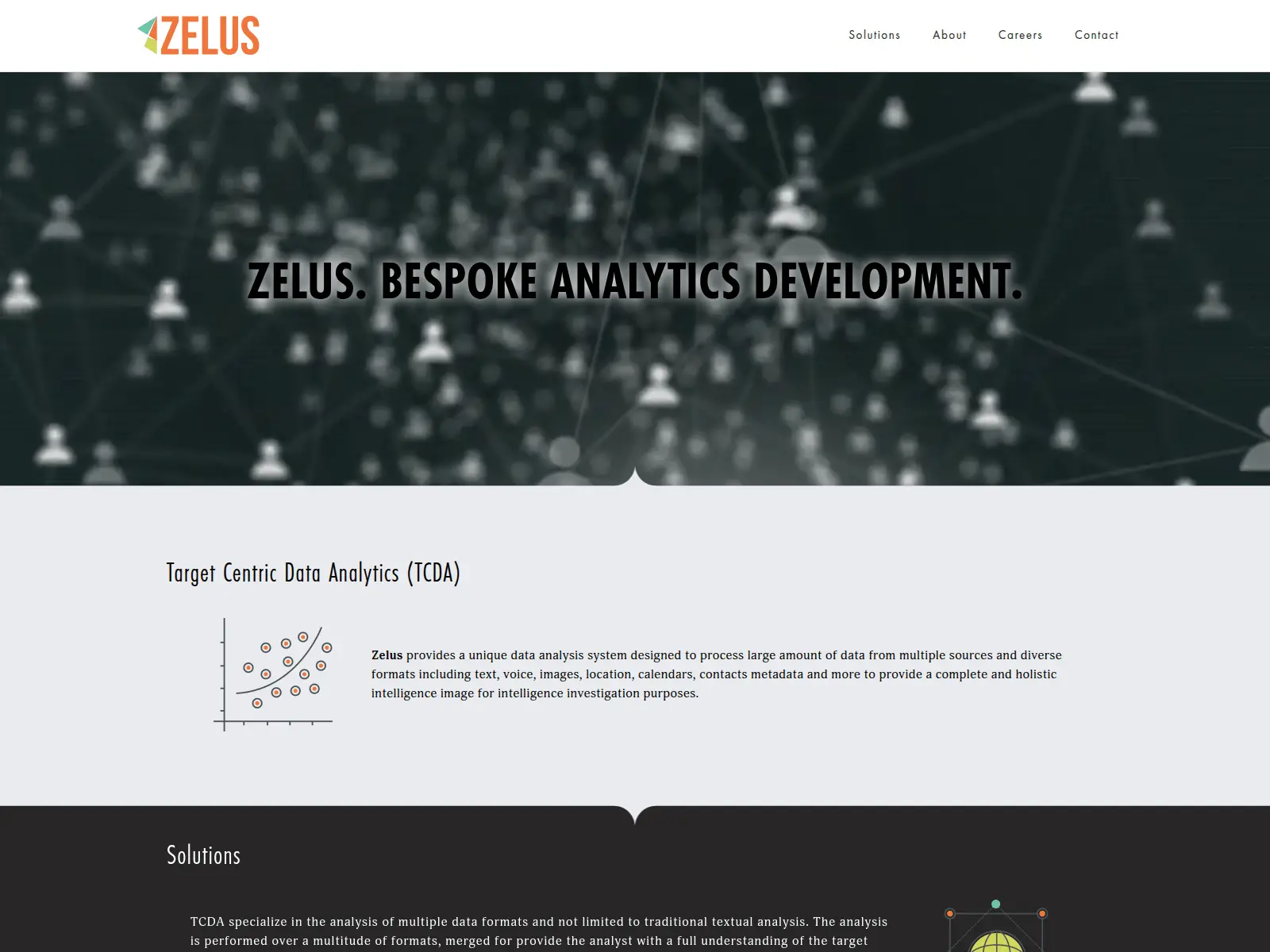 شرکت Zelus Analytics با دامنهی zelus-analytics[.]com مرتبط است که روی همان آدرس IP دامنهی مربوط به PULSE FZCO میزبانی شده بود. این دامنه حداقل از ۸ مارس ۲۰۲۴، دو روز قبل از ثبت دامنهی PULSE FZCO، تا ۲۸ اکتبر ۲۰۲۵ روی این IP فعال بوده و بعدش روی اون IP بالا نمی اومد. طبق ادعای سایت، Zelus Analytics یک “سیستم تحلیل دادهی منحصربهفرد” ارائه میده که قادر حجم عظیمی از دادهها رو از منابع مختلف و با فرمتهای متنوع، از جمله متن، صدا، تصویر، موقعیت مکانی، تقویمها، متادیتای مخاطبین و …، پردازش کنه تا “یک تصویر جامع و کامل اطلاعاتی برای اهداف تحقیقات هوش اطلاعاتی” ارائه بده. این سیستم TCDA (مخفف Target Centric Data Analytics) نام داره.