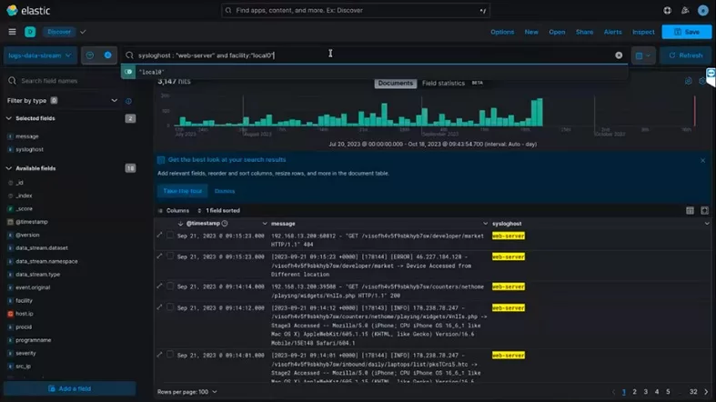 برای ۳۰ دقیقه ی بعد، ویدیو نشان میده که یک کارمند Intellexa در حال بررسی داشبورد تحلیلی Elasticsearch است که لاگها و تحلیلهای مربوط به سیستمها و اجزای جاسوسافزار Predator رو نشان میده (شکل زیر).