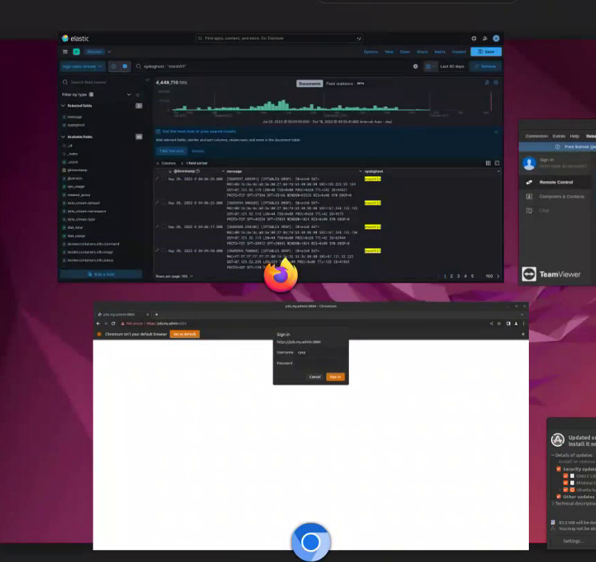 مربی، داشبورد Elasticsearch رو از طریق یک مرورگر روی دسکتاپ Ubuntu که بخشی از شبکه ی بکاند مشتری بود، مشاهده میکنه. این همان سیستم Ubuntu است که Intellexa از طریق TeamViewer به اون وصل شده.