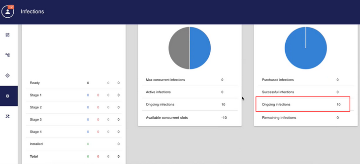 شکل زیر اسکرینشاتی از یک نمونه داشبورد PDS که تعداد آلودگیهای در حال انجام رو نمایش میده.