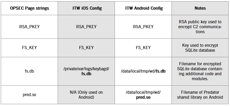 بر خلاف هدف Intellexa، همین سند OPSEC اکنون برای محققان، حکم کیلد طلایی فارنزیکی رو داره و امکان رهگیری دقیق حملات Predator رو فراهم میکنه. تمام نام فایلها و تنظیمات پیکربندی ذکرشده در این سند، در نمونههای اندروید و iOS Predator کشف شده توسط Citizen Lab هم وجود داشتن. این نمونهها مربوط به حملاتی بودن که افراد مرتبط با مصر رو هدف قرار داده بودن، از جمله فعال سیاسی شناخته شده Ayman Nour.