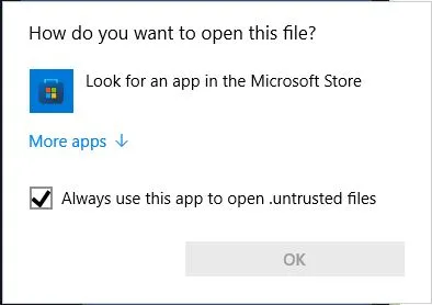 تلگرام برای حل این مشکل از یک راه حل سمت سرور استفاده کرده. اگه فایل pyzw رو ارسال کنید، به آخرش یک untrusted اضافه میکنه و در نتیجه اگه روش کلیک کنید، مستقیما اجرا نمیکنه و پیام ویندوز مبنی بر اینکه با چه برنامه ای باز کنه، نمایش میده.