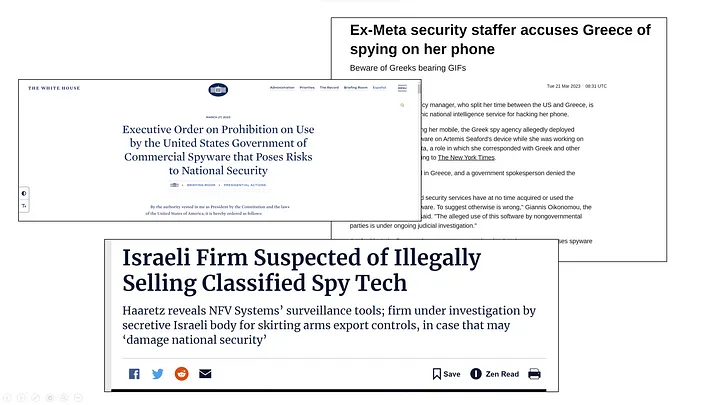- https://www.whitehouse.gov/briefing-room/presidential-actions/2023/03/27/executive-order-on-prohibition-on-use-by-the-united-states-government-of-commercial-spyware-that-poses-risks-to-national-security/