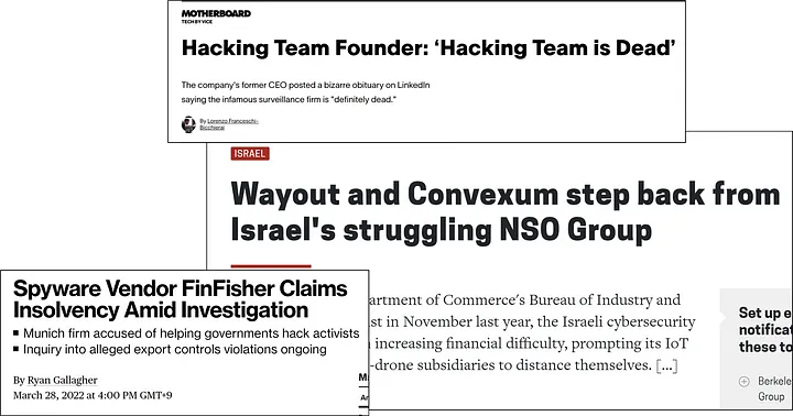 - https://www.bloomberg.com/news/articles/2022-03-28/spyware-vendor-finfisher-claims-insolvency-amid-investigation