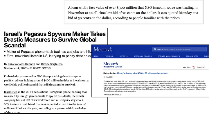 - https://www.bloomberg.com/news/articles/2022-11-04/israel-s-nso-takes-drastic-measures-to-survive-spyware-scandal?leadSource=uverify%20wall