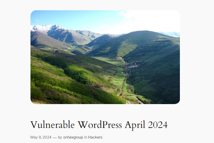 Hash Vulnerable_WordPress_April_2024.7z: 8CA69FAA88A9D39A16BE9875B8BE6AC9E5F9315641919E1AC79FE86D2E4708AF |