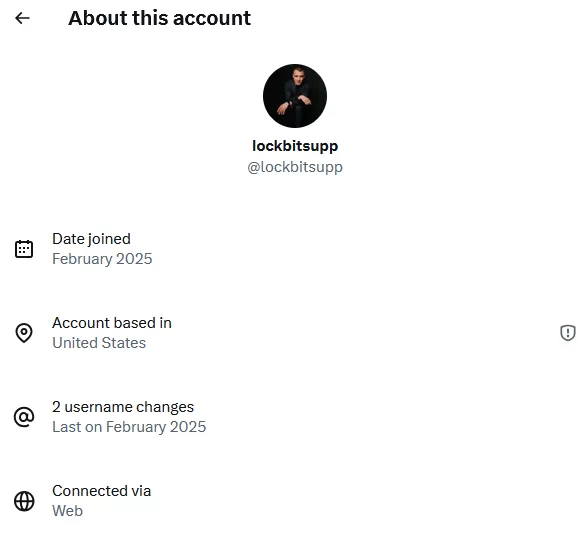 یا برای lockbitsupp، رهبر گروه باج افزاری LockBit این اطلاعات بصورت زیر است: